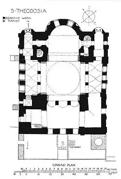 L’édifice est l’un des plus importants bâtiments religieux de l’époque byzantine encore existant, mais la date de son érection et de sa dédicace, considérée longtemps comme certaine [1] est maintenant remise en question, de même que son identification qui l’associe soit à l’église Sainte-Théodosie, soit à celle du monastère du Christ Évergète[2].