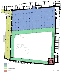 - Vue de la cour et du portique (ou galerie narthex) qui précède la salle de prière.
