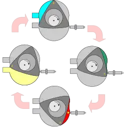 Le principe du moteur à piston rotatif est identique à celui des moteurs à pistons « classiques » : compresser l'air et le carburant injecté, provoquer une combustion, qui produira une surpression motrice, puis évacuer les gaz brûlés, et recommencer le cycle. Au chapitre des différences, le moteur rotatif n'a pas besoin de soupape, et chaque face du piston (aussi appelé « rotor ») agit comme un piston classique.