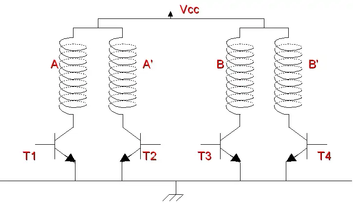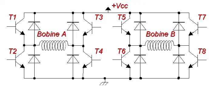 Mini-conclusion : le moteur bipolaire est plus simple à fabriquer, mais il nécessite 8 transistors alors que le moteur unipolaire ne nécessite que 4 transistors.