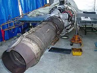 La tuyère est reliée au tube d'extension par des vis, et dispose d'une section fixe. Le diamètre de cette dernière varie de 303 à 316 mm. Ce diamètre, choisi en usine, déterminera la poussée, la température des gaz d'échappement et la consommation spécifique du moteur[2].