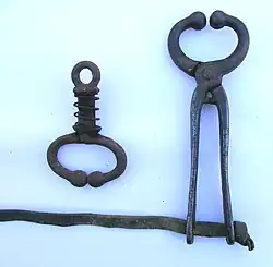 La mouchette est une pince métallique dont on rapproche les branches à volonté au moyen d'un coulant, assez gros pour qu'on puisse le faire jouer le long des branches de l'instrument. Les branches se terminent par une courbure dont les extrémités peuvent se rapprocher. C'est cette partie de la pince-mouchette qui constitue la pince proprement dite et qui sert à contraindre le bovin sans le blesser. L'autre extrémité des pinces représente une sorte d'anse ou d'anneau à laquelle on adapte une longe ou un bâton conducteur. La pince-mouchette s'applique par son extrémité courbée sur la cloison nasale du bovin au moyen d'une courroie de cuir, elle se trouve couchée sur le chanfrein et sur le front de l'animal et maintenue en place par une autre courroie qui passe sous les cornes.
