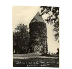 Pointe-aux-Trembles - Moulin à vent, vers 1925Caractéristiques: Tour cyclindrique en pierre, surmontée d'un toit conique couvert en bardeau de cèdre. jambages et linteaux de plusieurs des portes et fenêtres en pierre de taille