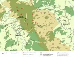 Lorsque les positions des deux armées se stabilisent, le moulin devient un poste de secours permanent, un centre de ravitaillement et un important cantonnement des troupes allemandes engagées lors de la bataille de Verdun[30]. Protégé de l'armée française par le relief boisé, le moulin est alors une base stratégique afin de relier le front.