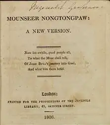 Page de titre de l'édition de 1808 de Mounseer Nongtongpaw.
