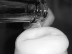 - boucher l'ouverture avec le doigt et secouer énergiquement ; on obtient une mousse qui apparaît au premier abord blanche ;