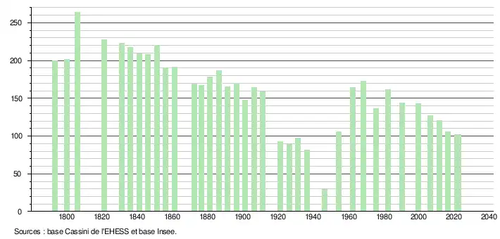 - ↑ Population municipale de référence en vigueur au 1er janvier 2025, millésimée 2022, définie dans les limites territoriales en vigueur au 1er janvier 2024, date de référence statistique : 1er janvier 2022.
