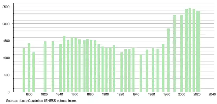 2 358 hab. (2022 en évolution de −3,4 % par rapport à 2016)