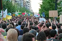 Le mouvement des Indignés (Indignados en espagnol) ou Mouvement 15-M[1] est un mouvement de manifestations non-violentes né sur la Puerta del Sol à Madrid, en Espagne, le , rassemblant des centaines de milliers de manifestants dans une centaine de villes[2], se prolongeant par divers modes d’action (campements, marches). A suivi une série de manifestations pacifiques, rassemblant jusqu'à plusieurs dizaines de milliers de personnes, organisées sur les réseaux sociaux et des sites web dont ¡Democracia Real Ya![3] (Une vraie démocratie, maintenant), auxquels se sont joints de 200[4] à 500 organismes soutenants, parmi lesquels les collectifs ATTAC, Anonymous, NoLesVotes et Juventud Sin Futuro (« Jeunesse sans avenir »)[5].