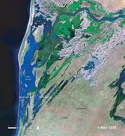 Mpal sur une photo satellite de la NASA de 1999 (dans la partie inférieure de l'image, au centre)