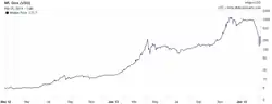 Son effondrement brutal est survenu en [1],[3] et serait dû à un piratage informatique. Les pirates auraient en effet réussi à détourner 744 408 Bitcoins correspondant à des transactions refusées à tort, sans que la manœuvre informatique soit détectée par une réconciliation quotidienne des opérations par Mt. Gox[4],[5].