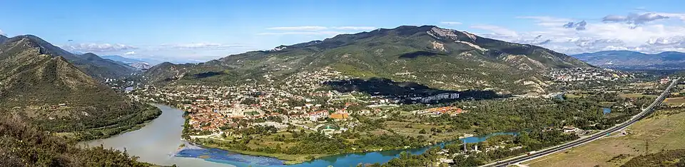Mtskheta (en géorgien : მცხეთა , romanisé : mtskheta) est une ville de la région de Mtskheta-Mtianeti, en Géorgie. Une des plus anciennes villes de Géorgie ainsi que l'une des plus anciennes villes habitées en continu du monde[1], elle est située à environ 20 km au nord de Tbilissi, à la confluence des rivières Mtkvari et Aragvi. Actuellement une petite capitale provinciale, pendant près d'un millénaire jusqu'au Ve siècle de notre ère, Mtskheta était une grande ville fortifiée, un centre économique et politique important du royaume d'Ibérie.