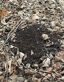 La présence d'une importante pédofaune riche en particulier en vers de terre et en macroarthropodes (diplopodes, cloportes) assure une incorporation rapide de la litière.