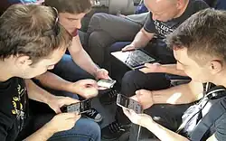 Un jeu vidéo multijoueur permet à plusieurs personnes de participer à une même partie[1]. Cette fonctionnalité peut se réaliser soit en partageant le matériel (exemple : un jeu multijoueur sur une console de salon qui divise l'écran en fonction du nombre de joueurs), soit en mode de jeu en réseau sur plusieurs plates-formes de jeu distinctes qui communiquent entre elles au travers d'un réseau informatique (soit entre particuliers en réseau local, soit sur un jeu en ligne via Internet).