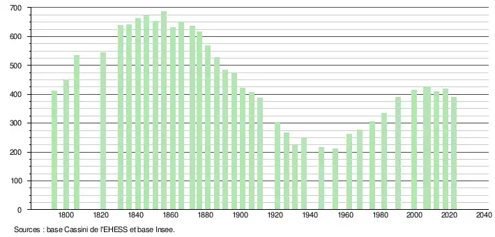 - ↑ Fiches Insee - Populations de référence de la commune pour les années 2006, 2007, 2008, 2009, 2010, 2011, 2012, 2013, 2014, 2015, 2016, 2017, 2018, 2019, 2020, 2021 et 2022.