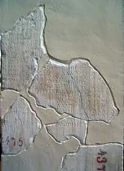 Fragment de l'édit de Dioclétien trouvé à Aigeira : « édit du Maximum ».