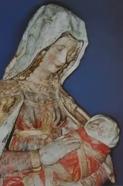 - Parmi la statuaire, on peut voir La Tentation d'Ève (XIIe siècle), attribuée à Gislebert[11],[12]. Ce haut-relief figurait sur le linteau d'un portail latéral de la cathédrale Saint-Lazare d'Autun. Le Tombeau de saint Lazare (vers 1170), œuvre monumentale signée du moine Martin[13], est en partie reconstitué à l'aide des statues préservées : Saint André, Marthe et Marie-Madeleine. Ce reliquaire de six mètres de haut, en forme d'église miniature, se trouvait derrière le chœur de la cathédrale d'Autun et fut détruit en 1766[14],[15]. Par ailleurs, sont aussi présentées des sculptures réalisées par des artistes bourguignons du XVe siècle et représentant, entre autres, Sainte Marguerite, Saint Michel, Sainte Catherine et Sainte Barbe. Enfin, la Vierge d'Autun, en calcaire polychrome, est un des chefs-d'œuvre du musée.