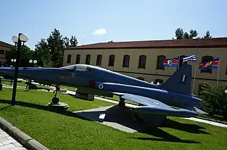 - Dans les deux cours, sont installés devant un avion F5 et plusieurs monuments, et à l'arrière quelques engins blindés.