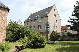 Façade est du bâtiment ; à droite (au nord) se trouvent la synagogue et son jardin (non visibles).