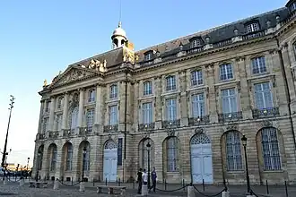 L'hôtel des Douanes à Bordeaux, vue d'ensemble depuis la place de la Bourse.