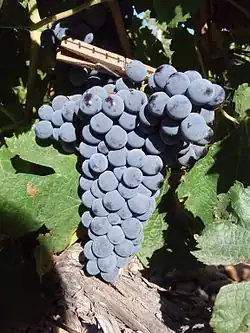 Grappes de taille moyenne et de forme cylindrique et compacte. Les baies sont de forme ovoïde, noires-bleutées. N'est jamais vinifié seul mais est souvent associé au grenache, au syrah ou encore au mourvèdre.
