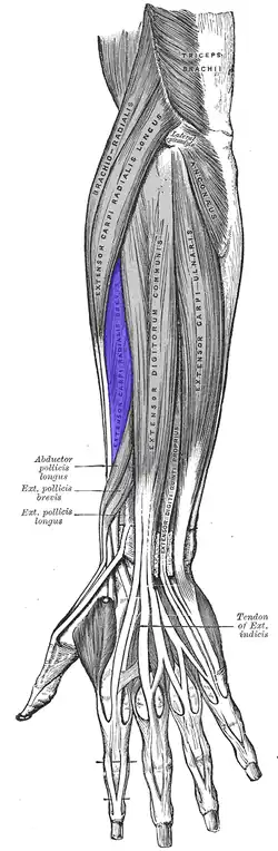 Le muscle court extenseur radial du carpe (ou muscle deuxième radial externe ou muscle court radial) est un muscle de l'avant-bras. Il se situe dans le plan superficiel de la loge antebrachiale postérieure.