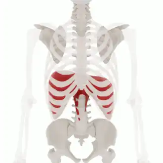 Les digitations nées de la dixième à la douzième côte s’unissent aux faisceaux d’insertion homologues du muscle transverse de l’abdomen.