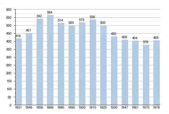 - Sources:INS, Rem:1831 jusqu'en 1970=recensements, 1976= nombre d'habitants au 31 décembre