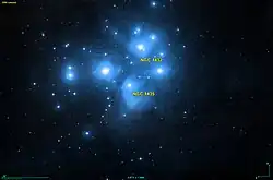 Position de la nébuleuse de Mérope dans l'amas des Pléiades.