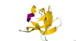 ↑ PDB1NEB; (en) Anastasia S Politou, Stefania Millevoi, Mathias Gautel, Bernhard Kolmerer et Annalisa Pastore, «SH3 in muscles: solution structure of the SH3 domain from nebulin», J. Mol. Biol., vol.276, no1, , p.189–202 (PMID9514727, DOI10.1006/jmbi.1997.1521)