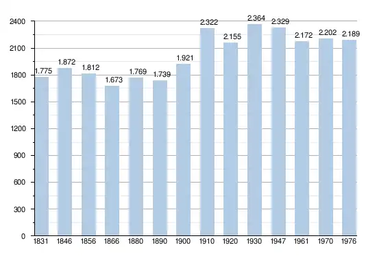 • Sources : INS, Rem. : 1831 jusqu'en 1970 = recensements, 1976 = nombre d'habitants au 31 décembre.