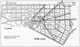 La zone des chambres funéraires était délimitée par des bornes, dont Rodolfo Lanciani a retrouvé trois exemplaires. Elles affichaient la même inscription, par laquelle le préteur Lucius Sentius signifiait l'interdiction dans ce périmètre de toute crémation, dépôt de corps ou d'ordure[7],[8].