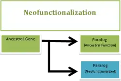 La néofonctionnalisation est une des issues possibles de la divergence fonctionnelle, et a lieu lorsqu'une copie d'un gène, ou paralogue, prend en charge une fonction totalement nouvelle à la suite d'une duplication génique. La néofonctionnalisation est un processus de mutation adaptatif, ce qui signifie qu'une des copies du gène ancestral doit muter afin de développer une fonction qui n'existait pas chez ce gène ancestral[1],[2],[3]. En d'autres mots, l'un des duplicons conserve sa fonction originale, alors que l'autre accumule des modifications moléculaires qui font qu'avec le temps, ce dernier peut réaliser une fonction différente[4]. On pense que ce processus n'est pas affecté par la pression de sélection car une des copies du gène peut muter sans affecter de façon préjudiciable la fitness d'un organisme car la fonction ancestrale est conservée dans l'autre copie[5],[6],[7],[8].