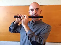 Percée de sept trous de jeu, d'une organologie très particulière, elle ne possède pas d'intervalles justes ni bien fixés. C'est la seule flûte au monde dont les octaves ne sont pas justes et donnent un intervalle plus proche de la septième mineure. Elle ressemble beaucoup extérieurement à la flûte ryuteki du gagaku, mais est intérieurement assez différente.