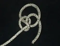 - ↑ Le courant de la ganse du dessous fait boucle en passant en dessous du tout, et va se nouer par devant.