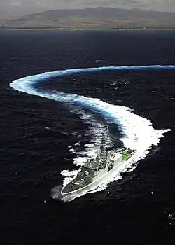 | Armement | Système d'arme rapproché Vulcan Phalanx CIWS 20 mm[2] Canon super-rapide Oto Melara 76 mm[2] 29 missiles standard à lancement vertical[2] 2 tubes lance-torpilles triples armées de torpilles MK46[2] |