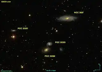 NGC 3697 est la galaxie la plus grosse et la plus brillante d'un groupe de galaxies, le groupe de Hickson 53. Ce groupe comprend quatre galaxies. Les trois autres galaxies du groupe sont PGC 36360 (HCG 53B), PGC 35355 (HCG 53C) et PGC 35381 (HCG 53D)[3].