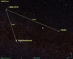 NGC 5715 est situé à environ 3,3 degrés au nord-est de l'étoile Rigil Kentaurus (Alpha Centauri) et à 3,3 degrés au nord-est de Hadar (Beta Centauri), deux étoiles de la constellation du Centaure.