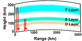 Pour établir des radiocommunications nationales dans la bande 2 à 16 MHz, la puissance est à répartir à l’intérieur d'une zone de 1 000 km autour de la station d’émission. Il ne s'agit plus de NVIS au sens strict mais toujours d'une propagation par réflexion unique.
