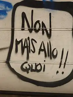 Graffiti illustrant la phrase « Non mais allô quoi ! » sur un mur d'une rue de Perpignan.