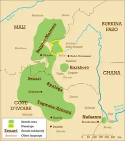 - ↑ (en) « Sénoufo, Nanerigé », sur Ethnologue (consulté le )