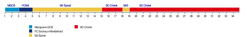 | SO Cholet | 2017 | 9e | 2024 | Stade Jean Bouin (J1 → J12) Stade Pierre Blouen |