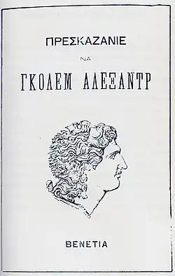 En conséquence, une propagande religieuse et scolaire grecque massive a eu lieu, et un processus d'hellénisation a été mis en œuvre parmi la population slave de la région[5],[6]. Le nom même de Macédoine, ressuscité au début du XIXe siècle après la fondation de l'État grec moderne, avec son obsession pour la Grèce antique dérivée de l'Europe occidentale, a été appliqué aux Slaves locaux[7]. L'idée était de stimuler le développement de liens étroits entre eux et les Grecs, reliant les deux parties aux Macédoniens antiques, comme contrepoids à l'influence culturelle croissante de la Bulgarie dans la région[8],[9]. En 1845, par exemple, le roman d'Alexandre a été publié en dialecte slave macédonien avec des lettres grecques[6]. Dans le même temps, l'ethnographe russe Victor Grigorovitch a décrit le changement récent du titre de l'évêque patriarcal grec de Bitola : de l'exarque de toute la Bulgarie à l'exarque de toute la Macédoine. Il a également noté la popularité inhabituelle d'Alexandre le Grand et qu'elle semblait être quelque chose qui a été récemment inculqué aux Slaves locaux[10]. En conséquence, à partir des années 1850, certains intellectuels slaves de la région adoptèrent la désignation macédonienne comme étiquette régionale, et celle-ci commença à gagner en popularité[11]. Dans les années 1860, selon Petko Slaveykov, de jeunes intellectuels macédoniens se disaient non pas bulgares, mais macédoniens, descendants des Macédoniens antiques[12]. Dans une lettre écrite à l’exarque bulgare en février 1874, Slaveykov rapporte que le mécontentement face à la situation actuelle « a fait naître chez les patriotes locaux l'idée désastreuse de travailler de manière indépendante à l'avancement de leur propre dialecte local et, plus encore, de leur propre chef ecclésiastique macédonienne »[13]. Néanmoins, d'autres intellectuels macédoniens, comme Konstantin Miladinov, continuèrent à appeler leur pays la Bulgarie occidentale et craignaient que l'utilisation de ce nouveau nom implique une identification à la nation grecque[14],[11],[15].