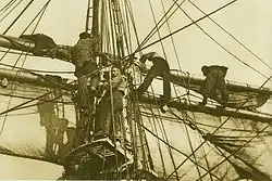 Manœuvre dans la mature d'un grand voilier à la fin du XIXe siècle