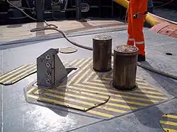 On peut dire également que les innovations majeures en matière de sécurité sont le fait des Norvégiens. Les bittards hydrauliques sont un bon exemple. Ces bittards sont de deux types : les towing pins et les shark jaws . Le rôle des towing pins est de maintenir le câble au centre du navire et éviter que la remorque ou le câble d'ancre ne passe sur le côté du navire. Auparavant ces bittards étaient de simples tubes renforcés qu'il fallait installer, à la main, dans des encoches prévues à cet effet sur le pont, au prix d'efforts épuisants pour l'équipage et, avec en prime, le risque de les voir sauter en cas de forte tension. Ce sont maintenant des pièces forgées qui montent et descendent à la demande, commandées depuis la passerelle ou le pont. Elles peuvent être pourvues de coiffes qui empêchent le câble de passer par-dessus ces pins. Les shark jaws sont aussi des bittards hydrauliques pourvus d'encoches calibrées qui permettent d'immobiliser les maillons des chaînes ou les cosses des câbles pour permettre leur connexion ou déconnexion. Avant cela, on utilisait le pelican hook, fixé à un câble de retenue, qui était en fait comparable à un stoppeur de chaîne d'ancre. Ce système très dangereux a été à l'origine de nombreux accidents. Le modèle shark jaw permet de travailler aujourd'hui en sécurité.
