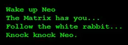 — Message affiché sur l’écran d'ordinateur de Neo dans Matrix (1999).
