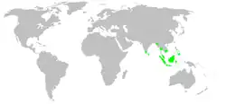 Cette espèce se rencontre en Inde, au Sri Lanka, en Birmanie, en Thaïlande, en Chine, au Viêt Nam, en Malaisie, en Indonésie, aux Philippines et au Japon[1],[2].