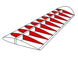 La rigidité des ailes dans le sens de l'envergure est assurée par des longerons : souvent un seul pour les avions légers, deux pour des moyens-porteurs, parfois trois sur les très grands appareils comme le Boeing 747[1]. Les nervures sont des structures placées perpendiculairement aux longerons (donc dans le plan avant-arrière de l'avion) qui, à leur tour, soutiennent la couverture de l'aile.