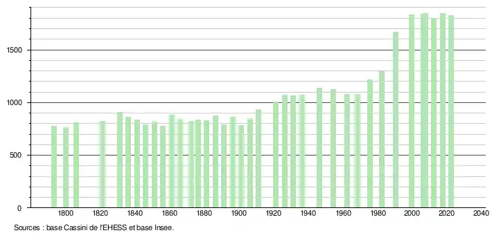 - ↑ Fiches Insee - Populations de référence de la commune pour les années 2006, 2007, 2008, 2009, 2010, 2011, 2012, 2013, 2014, 2015, 2016, 2017, 2018, 2019, 2020, 2021 et 2022.