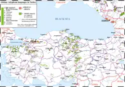 Tous les ressortissants de la Turquie sont officiellement considérés comme Turcs. Cependant, il y a plusieurs centaines de villages considérés comme purement « circassiens », avec une population de « Circassiens » estimés à 1 000 000, bien qu'il n'y ait pas de données officielles à cet égard, et les estimations sont fondées sur des enquêtes informelles. Les « Circassiens » en question ne peuvent pas toujours parler les langues de leurs ancêtres, et les partis turcs de centre-droit obtiennent généralement de bons résultats grâce à des programmes aux accents nationalistes, dans les localités où ils sont connus pour constituer une part notable de la population (tels qu'à Akyazı).